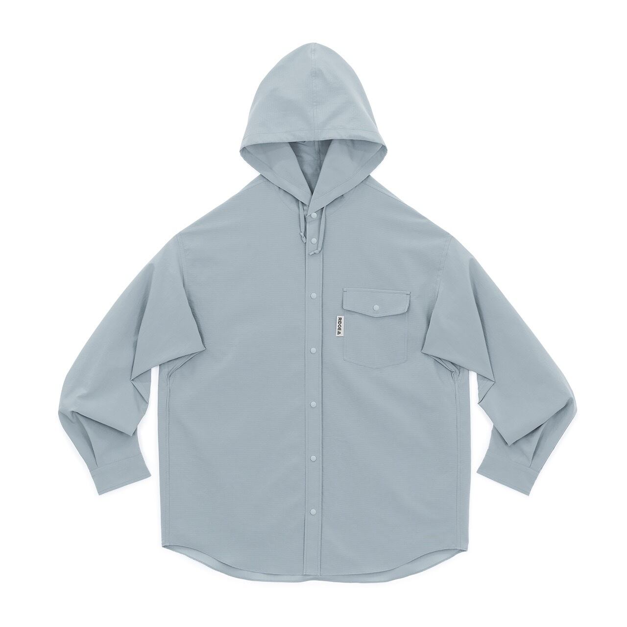 シャツをアウター的に使用した際に機能的に使えるフード付きのモデル。