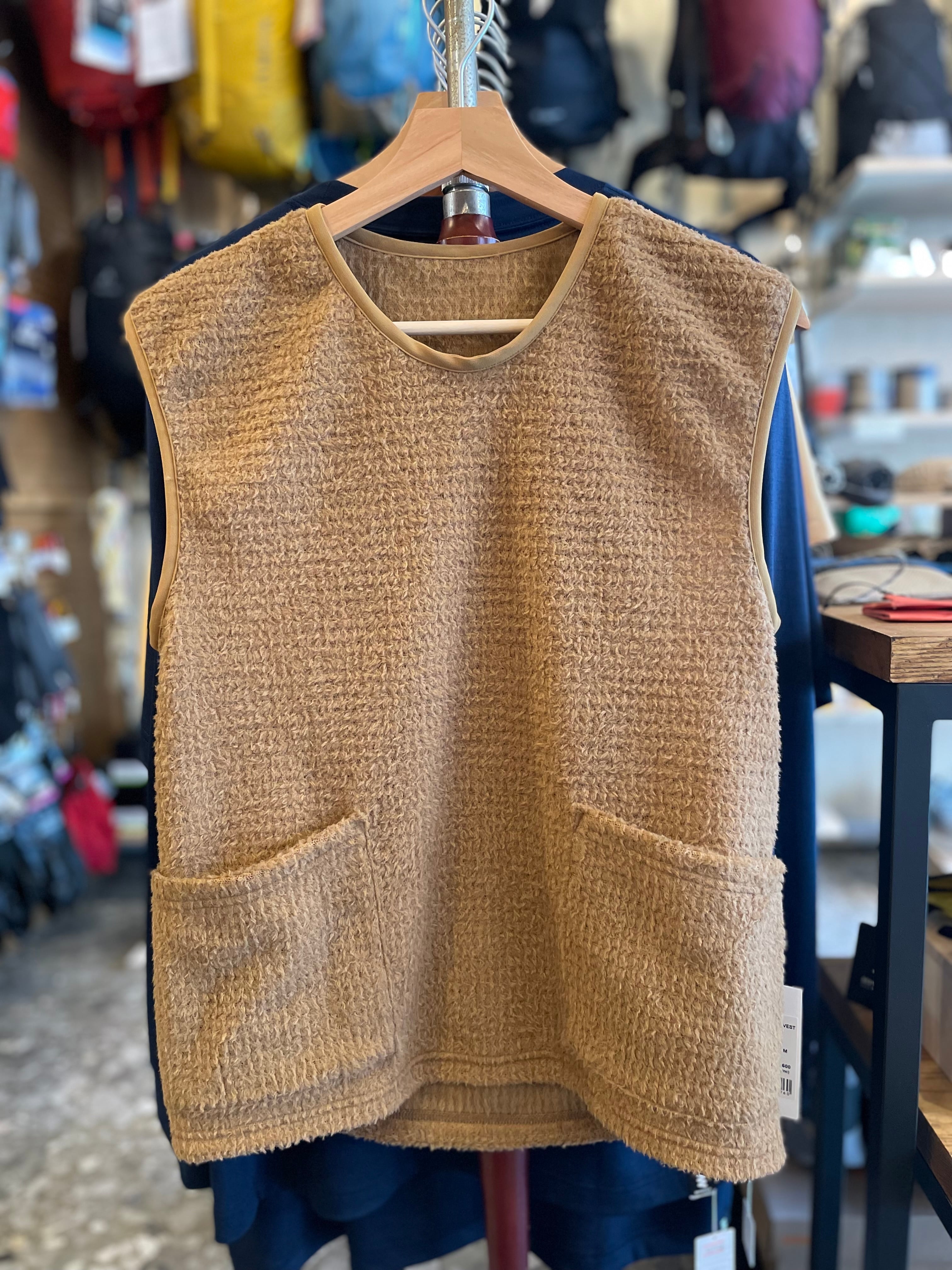 単体では軽やかで通気性がありますが、ウインドシェルやシャツを一枚重ねるだけで風抜けが抑えられ、しっかりとした保温力に変化。