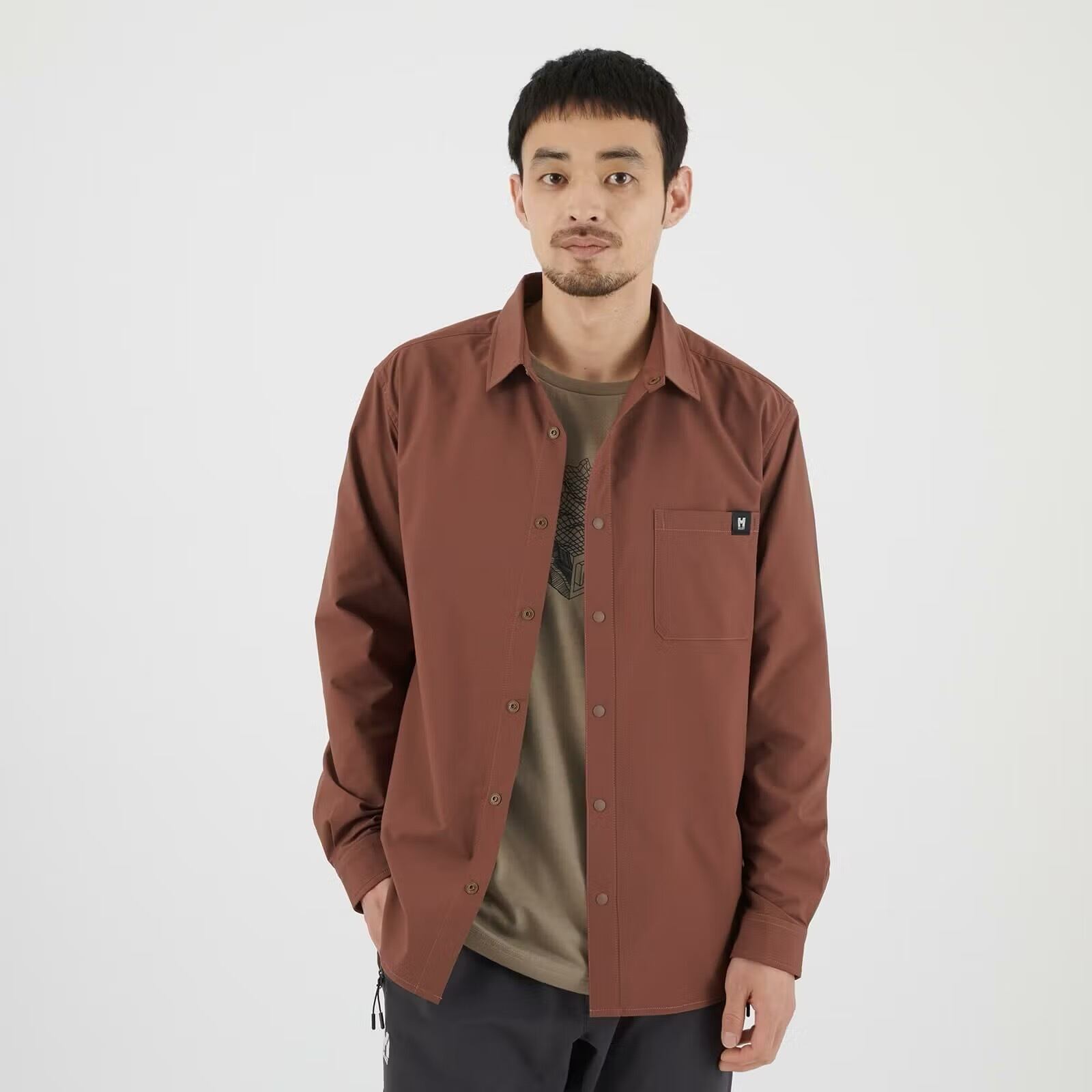 撥水性を備えた生地の軽くて動きやすいシンプルなシャツ。ちょっとした雨も安心で汚れもつきにくい撥水処理を施した中肉素材は汚れにも強く、適度な保温性と速乾性も備えています。フロントは脱ぎ着がしやすいドットボタン。小物入れに便利な胸ポケットを備え、秋冬のアクティビティでベースレイヤーの上から羽織るのにちょうどいいシャツです。
