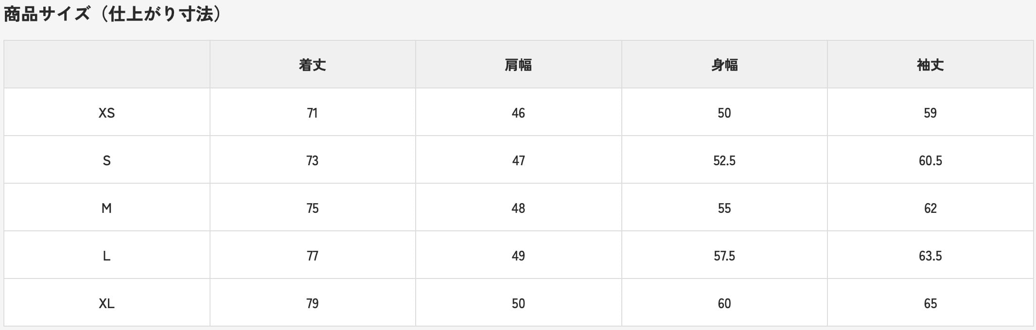 詳しくは写真のサイズ表をご覧ください。