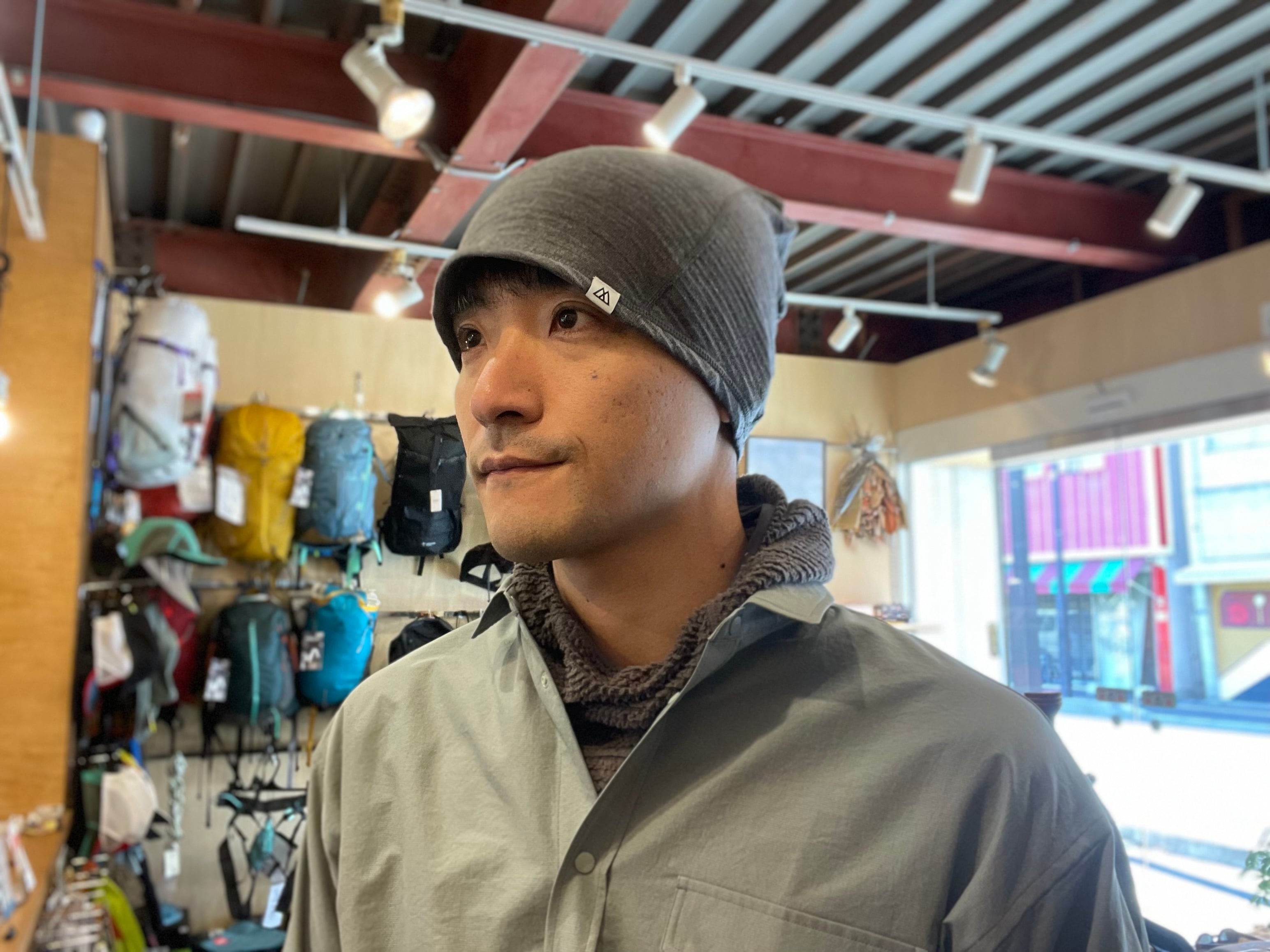 ・上部を内側に折り込むことでビーニー(簡易ニット帽)として使用可能