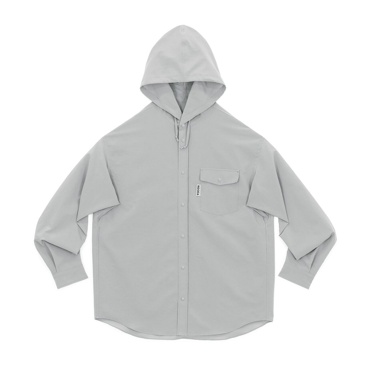 シャツをアウター的に使用した際に機能的に使えるフード付きのモデル。