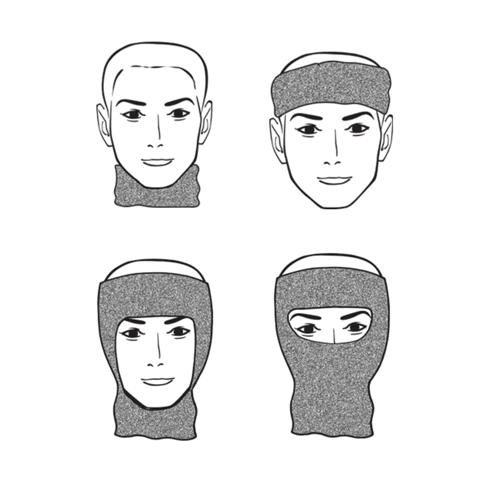 バラクラバの頭頂部がカットされた様なデザインで、ネックゲーター、ヘアバンド、そしてバラクラバと多用途に使えるアイテムです。
